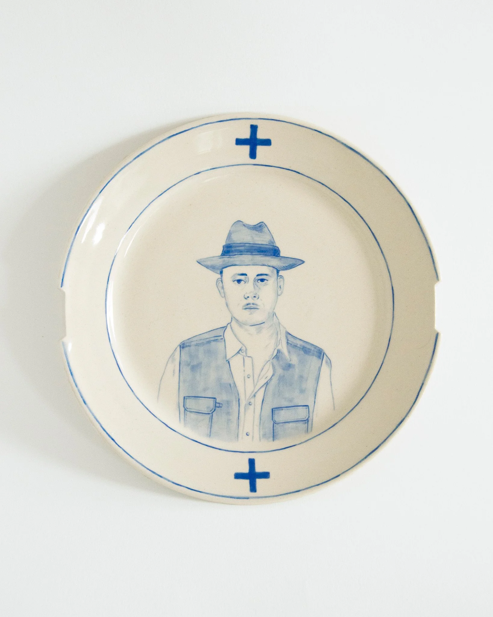 This dining table represents the intersecting stories of two characters through a survival-kit-inspired tablescape. Designed on themes of rebirth, each handmade object strapped into leather acts as a fragment in the story’s emotional architecture. A handsoap cast into a Blitz shelter recalls a moment from my family’s past. A beeswax candle symbolizes a search for truth and healing. Two dinner plates, painted with self-portraits of each character, represent a material labor of escapism as I insert myself into the characters' stories. Using craft to live through the lives of others, this table enlivens my own myth.